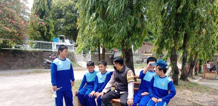 Kegiatan berlangsung santai namun penuh makna, di mana para siswa tampak antusias mendengarkan dan berinteraksi langsung dengan petugas. Melalui pendekatan yang humanis dan akrab, Bhabinkamtibmas berharap dapat menjadi teman baik serta panutan bagi anak-anak di lingkungan binaannya.