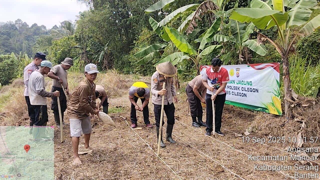 *Dalam rangka mendukung Swasembada Pangan Tahun 2025 Penanaman Jagung Hybrida.*Selasa, tanggal 01 Oktober 2025 Dilaksanakan Penanaman lahan baru untuk Bibit Jagung Hybrida yang bertempat di lahan jagung milik kelompok tani Bpk. Misra Rt. 04/ Rw.01 Kp. Gunung Ranji Kelurahan Angsana Kecamatan Mancak Kab. Serang Wilkum Polres Cilegon. Penanaman Jagung dalam rangka...