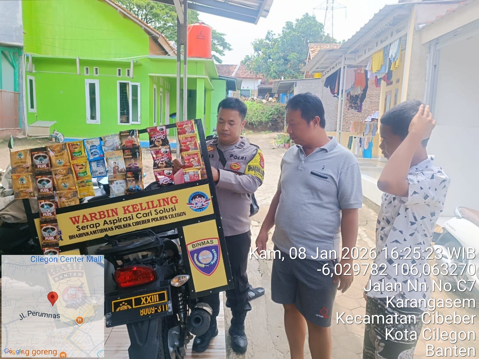 Kapolsek Ciwandan dan Bhabinkamtibmas Ciwandan melaksanakan kegiatan patroli untuk menjaga situasi kamtibmas yang aman dan kondusif. Kegiatan patroli ini dilakukan untuk ¹:- Mengantisipasi terjadinya aksi kejahatan: Dengan adanya patroli, masyarakat merasa lebih aman dan nyaman.- Memberikan pelayanan dan pengayoman kepada masyarakat: Bhabinkamtibmas Polsek Ciwandan secara aktif melakukan patroli dialogis dan memberikan pesan-pesan kamtibmas kepada warga.- Mencegah gangguan kamtibmas: Patroli...