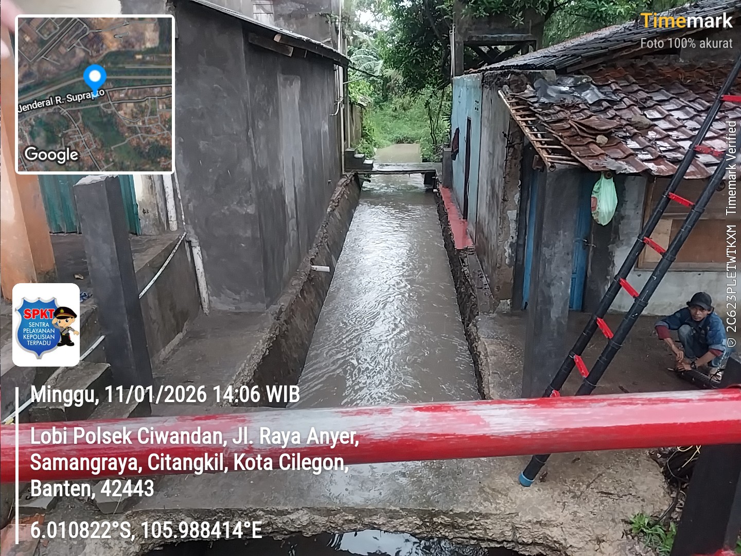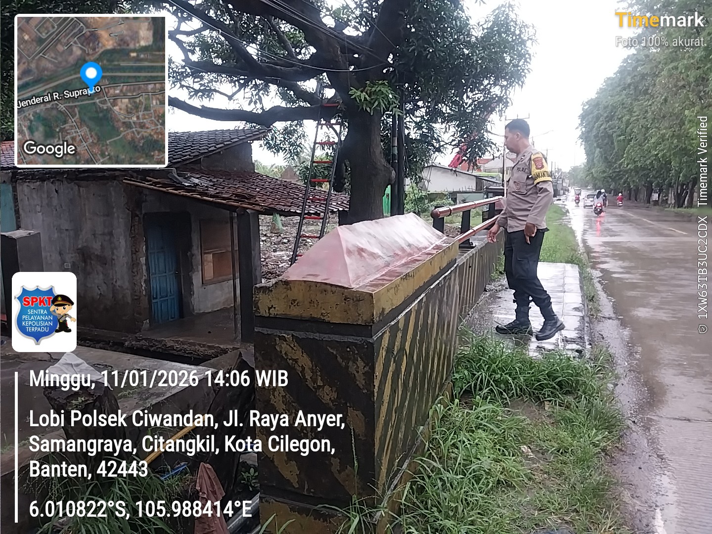 *Cilegon* - Hujan Dengan Intensitas yang Cukup Tinggi Pada hari Minggu tanggal 11 Januari 2026 Personil Polsek Ciwandan Polres Cilegon Polda Banten Melaksanakan Rekayasa Lalu-lintas di titik rawan Genangan Air, Minggu (11/01/2026).Kapolres Cilegon Polda Banten AKBP Dr. Martua Raja Taripar Laut Silitonga Melalui Kapolsek Ciwandan Polres Cilegon Polda Banten KOMPOL...