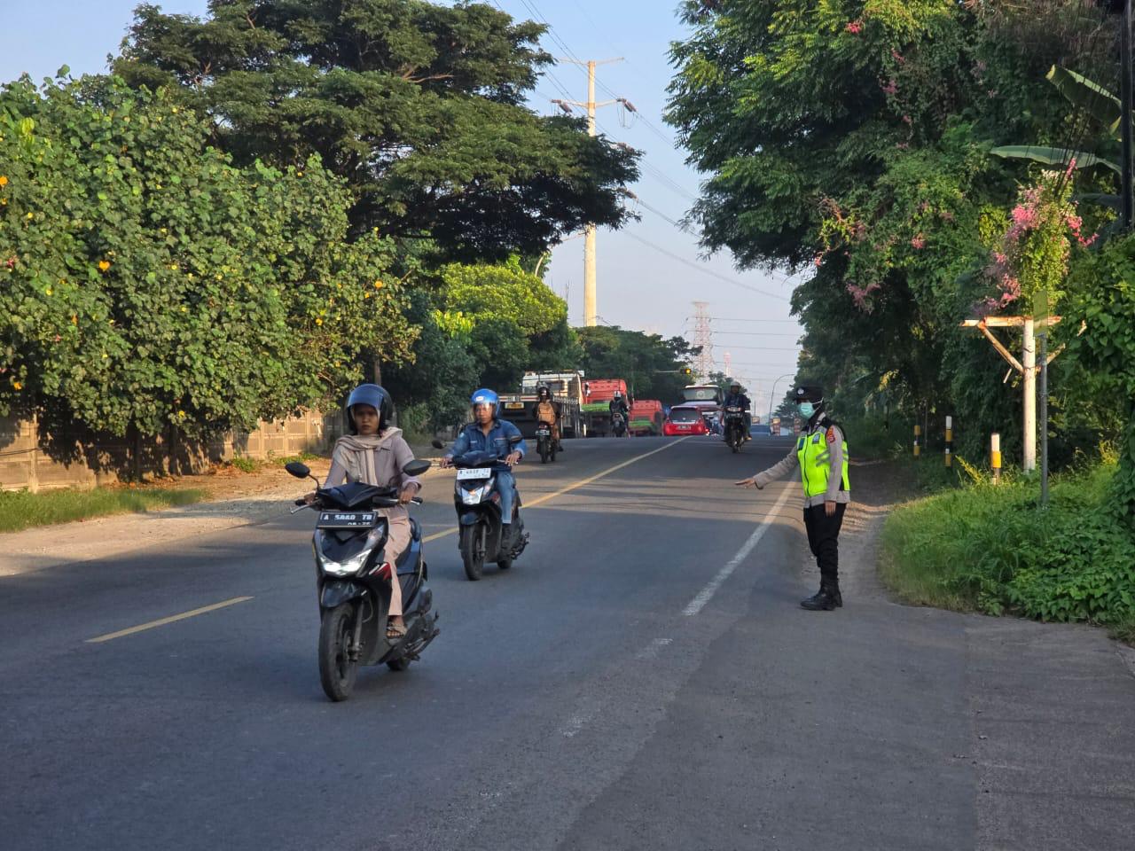 Cilegon,Polres Cilegon Polda Banten Pada Selasa/03/01/2026 Pukul 06.30 Wib, Personil Siwas Polres Cilegon, Aipda Emi Prasetyo melaksanakan kegiatan pengaturan arus lalu lintas di Jalur Protokol jalan utama Kota Cilegon tepat nya di jalur depan perumahan arga baja Pura Kota Cilegon. Kegiatan pengaturan arus lalu lintas yang dilaksanakan oleh personil Polres Cilegon merupakan kebijakan Kapolres Cilegon...