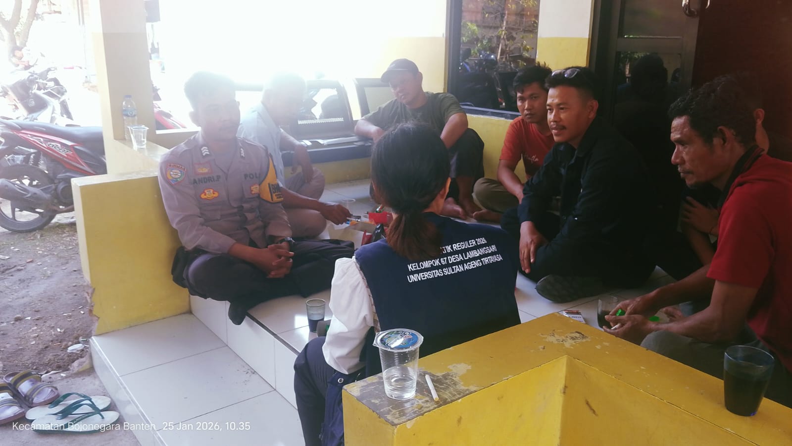 Cilegon ~ Bhabinkamtibmas Polsek Bojonegara Polres Cilegon Polda Banten Sambang dan silaturahmi dengan masyarakat merupakan salah satu tugas seorang bhabinkamtibmas untuk mengetahui situasi Kamtibmas Desa binaan dalam menjalin silaturahmi dengan Warga Ds Pangerangan di Warbinling Bhabinkamtibmas, Senin (26/01/2026). Dialogis dengan Warga yang lagi nongkrong di Warung Bhabinkamtibmas tersebut menyampaikan pesan...