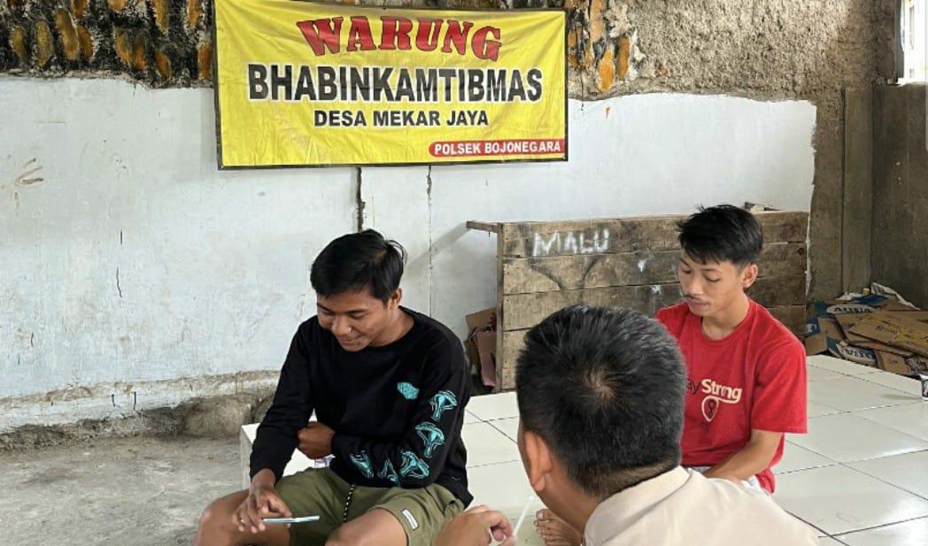 Brigadir Andri Bhabinkamtibmas Polsek Bojonegara S Polsek Bojonegara Polres Cilegon Ajak Warga Ngopi Aspirasi dan Menerima Keluhan Hanya Di Warung Bhabin dan Sosialisasi Call Center 110
