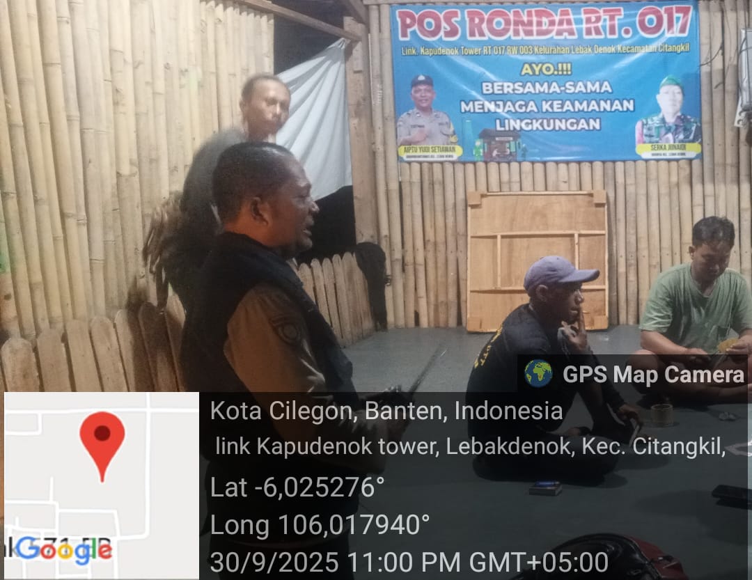 Kapolres Cilegon Polda Banten AKBP Dr. Martua Raja Taripar Laut Silitonga Melalui Kapolsek Ciwandan Polres Cilegon Polda Banten KOMPOL Andi Suherman mengatakan bahwa personelnya memantau kegiatan Siskamling di Daerah binaannya untuk menjaga stabilitas keamanan dan ketertiban masyarakat.