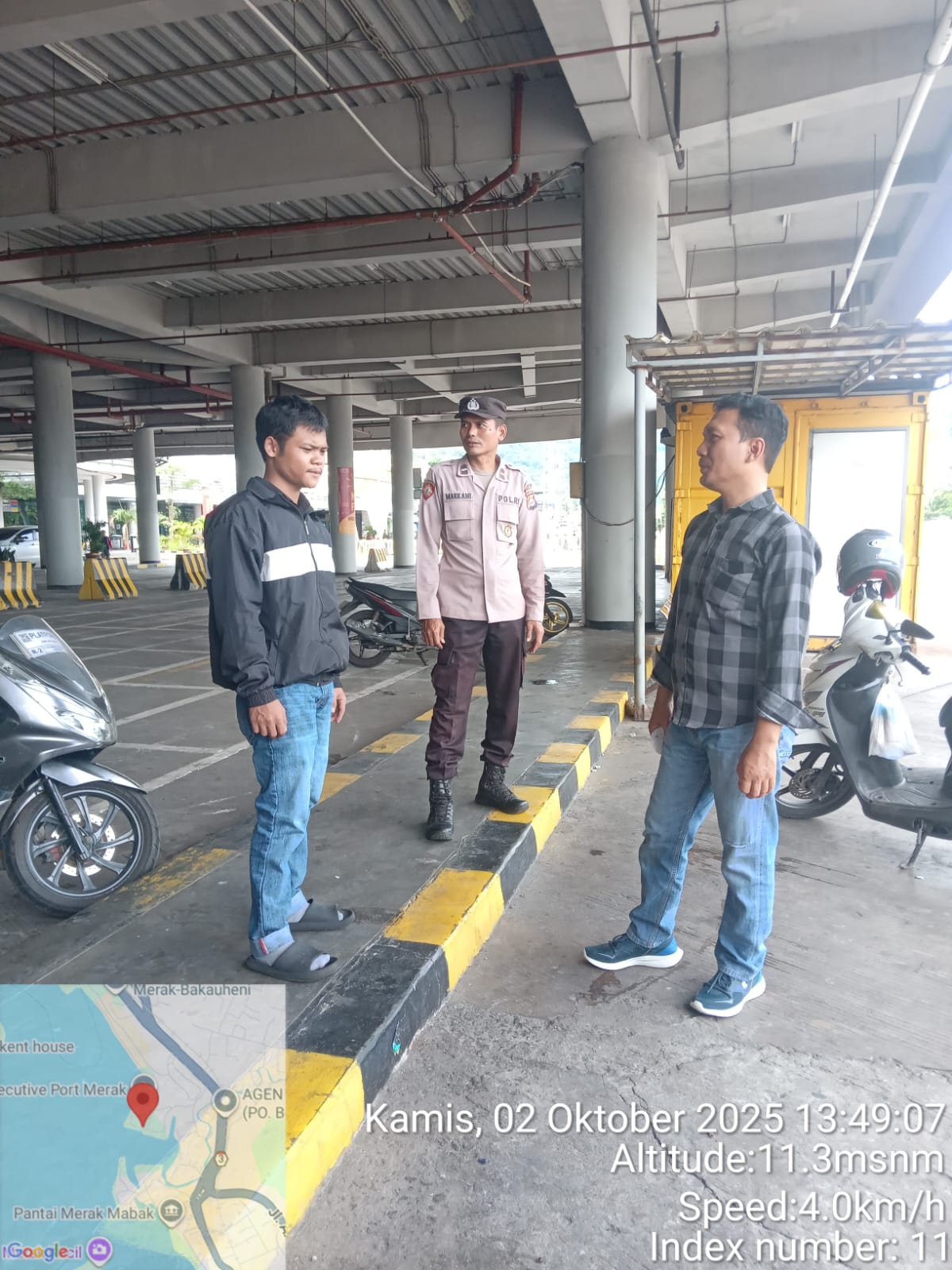 Cilegon - Personel Polsek Kskp Merak Polres Cilegon Polda Banten melaksanakan sambang dan patroli kawasan pelabuhan merak dalam rangka menjaga Harkamtibmas di Kawasan Pelabuhan Merak, Kamis (02/10/2025).
