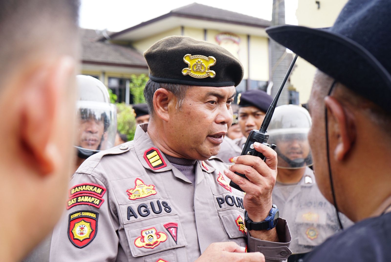 “Filosofi dari kegiatan ini adalah, dalam situasi apapun aparat penegak hukum bersama pemerintah harus berkolaborasi memberikan perlindungan dan jaminan keamanan kepada masyarakat. Kehadiran kita adalah untuk mengawal aspirasi, sekaligus menjaga stabilitas daerah agar tetap kondusif,” tegas Kapolres.