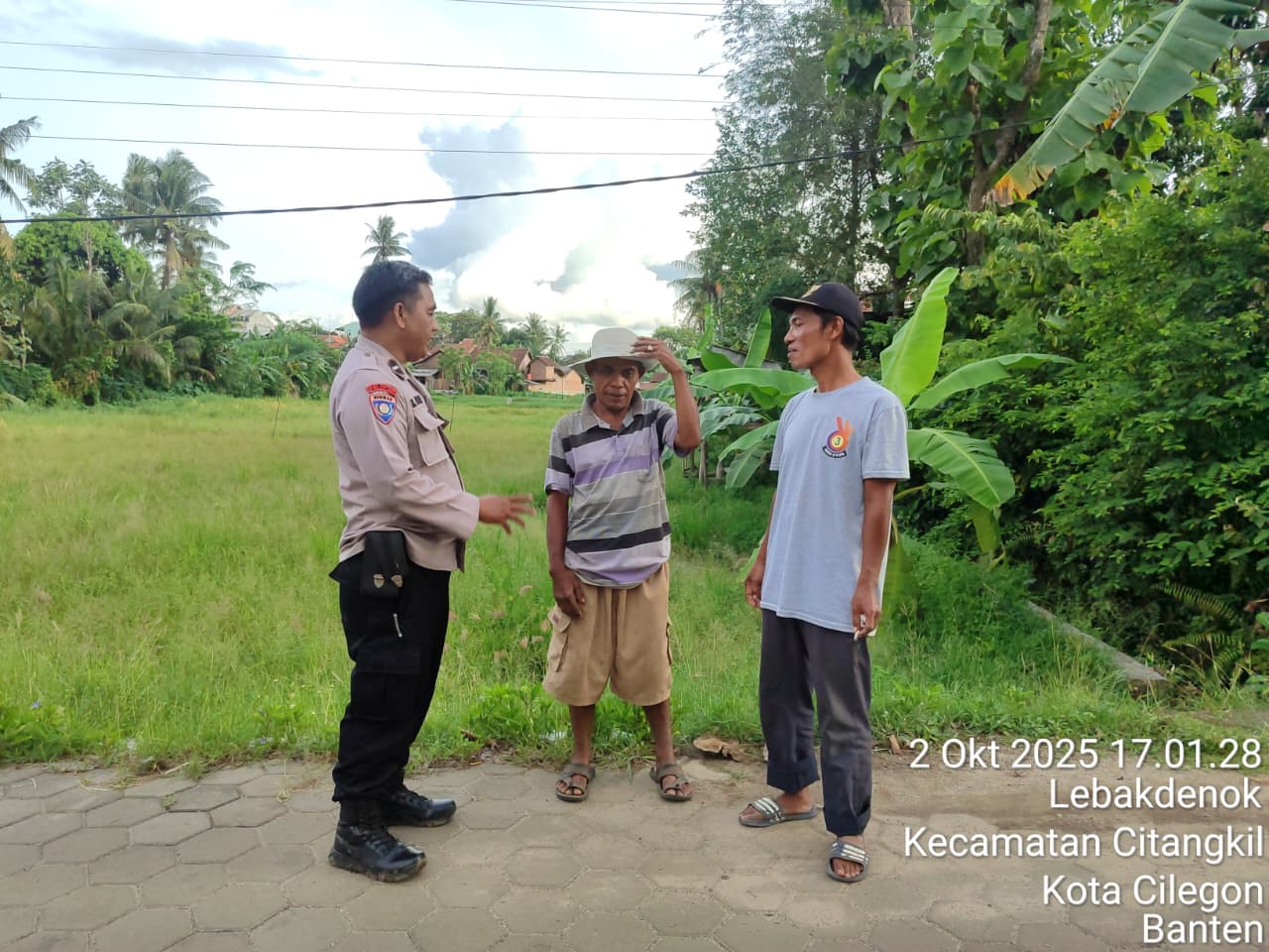 Cilegon - Bhabinkamtibmas Polsek Ciwandan Polres Cilegon Polda Banten Menyapa warga serta Ajak warga Binaannya untuk berperan aktif jaga keamanan lingkungan serta jalin komunikasi agar tercipta situasi aman di daerah hukum Polsek Ciwandan Polres Cilegon Polda Banten,Kamis (02/10/2025).