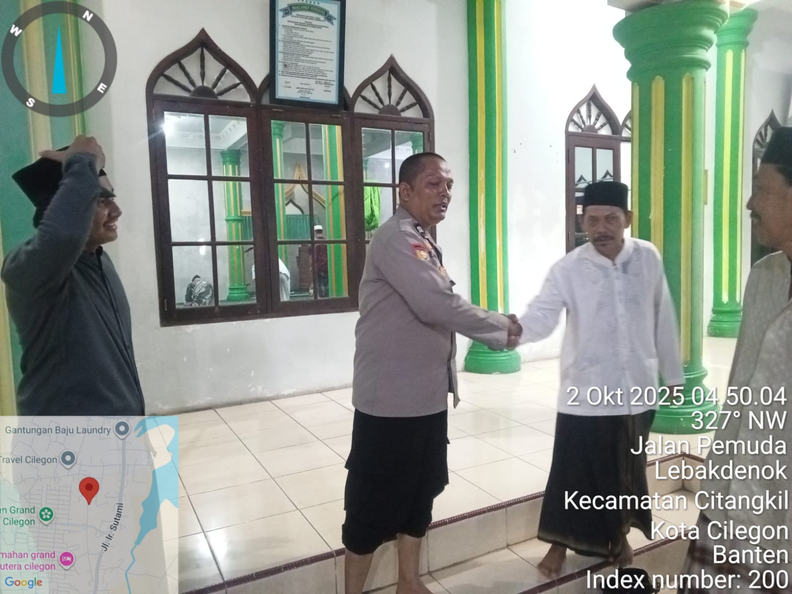 Cilegon - Guna memastikan Harkamtibmas tetap berlangsung aman kondusif,Bhabinkamtibmas Polsek Ciwandan Polres Cilegon Polda Banten menyambangi DKM pengurus Masjid Usai Sholat Berjama’ah,Kamis (02/10/2025).