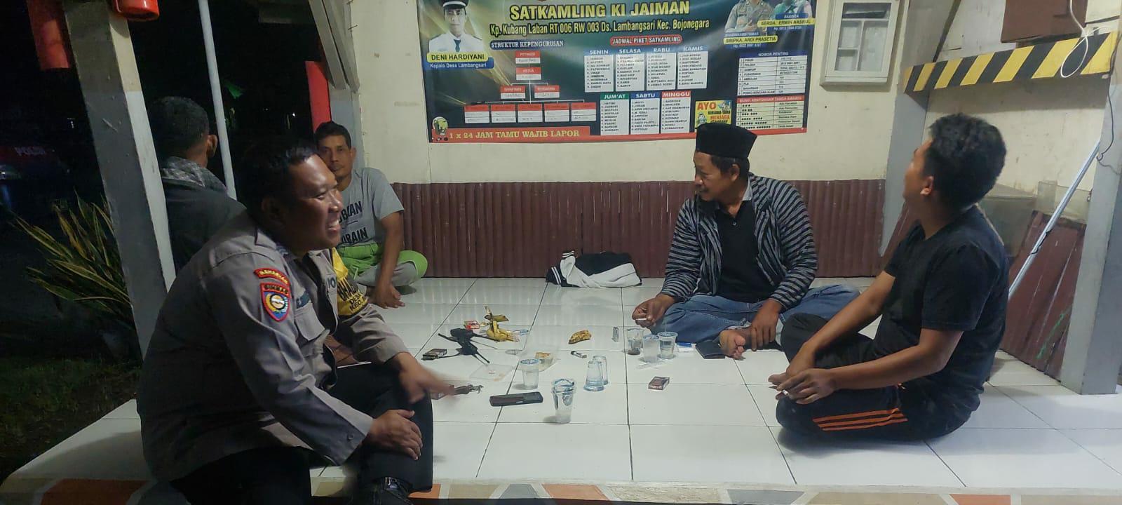 Nongkrong Asik Bareng Aipda Rossy Bersama Bripka Zenal Polsek Bojonegara Di Pos Kamling Sampaikan Pesan-pesan Kamtibmas Dan Sosialisasi Call Center 110 Ke Petugas Ronda