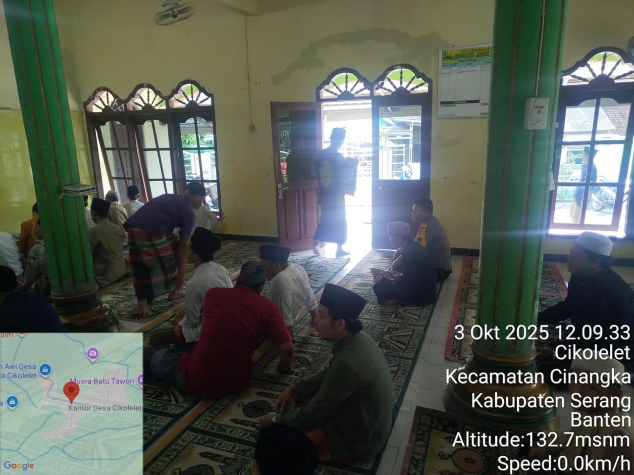 *POLRES CILEGON* - Kapolsek Cinangka Polres Cilegon Polda Banten dan Jajaran melaksanakan giat Juma't keliling dalam rangka silaturahmi menjalin kemitaraan dan menjaga Harkamtibmas di Desa Binaannya sebagai bentuk mendukung Program Quick Wins Presisi Polri, Jumat (03/10/2025).