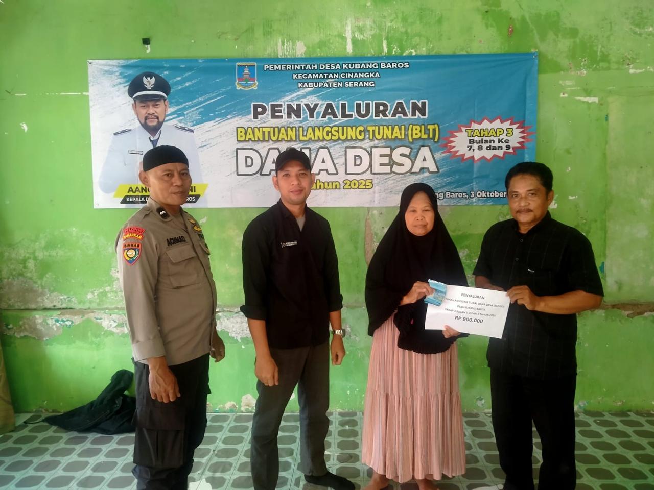 Seperti pada Jumat (03/10) di Desa Kubangbaros dilaksanakan kegiatan penyaluran bantuan BLT-DD Tahap 7,8dan 9 periode anggaran tahun 2025 yang mengambil tempat di Kantor Desa Kubangbaros dan bagia yang sakit di antarkan ke rumah , untuk itu Aipda Achmad sebagai Bhabinkamtibmas Desa Kubangbaros langsung bergerak melakukan bantuan dan pengawalan, masyarakat yang menerima sebagai penerima bantuan berupa uang tunai sebesar @Rp 900.000,- (sembilan ratus ribu rupiah).