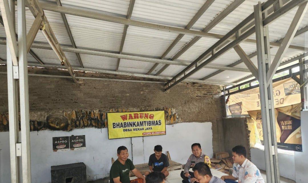 Ciptakan Keamanan dan Keharmonisan, Bripka Tri Handoko dan Brigadir Chaeruman Polsek Bojonegara Bersama Warga Berbincang-Bincang Santai Di Warung Bhabin