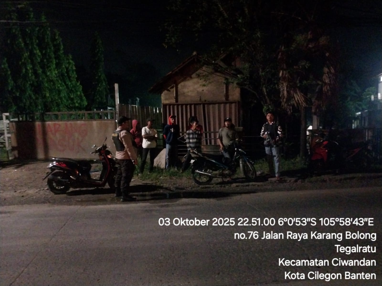 Cilegon - Personil Polsek Ciwandan Polres Cilegon Polda Banten melakukan patroli malam yang bertujuan untuk mengantisipasi adanya aktivitas balap liar dan tawuran kelompok geng motor di daerah hukum Polsek Ciwandan Polres Cilegon Polda Banten, Sabtu (04/10/2025).