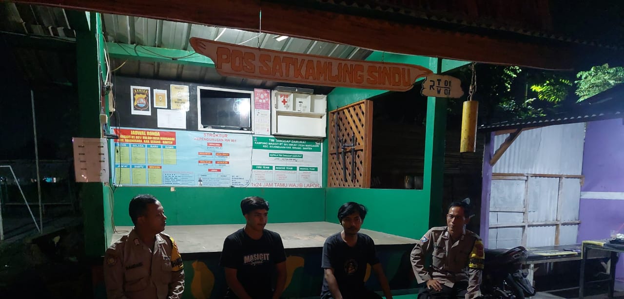 Cilegon ~ Dalam upaya menjaga situasi kamtibmas tetap kondusif, Kanit Samapta dan Bhabinkamtibmas Polsek Bojonegara Polres Cilegon Polda Banten,  Ipda Yudi dan Bripka Zenal melaksanakan kegiatan kontrol dan pemantauan ronda malam,di sejumlah pos ronda warga yang berada di wilayah binaannya, Minggu (05/10/2025).