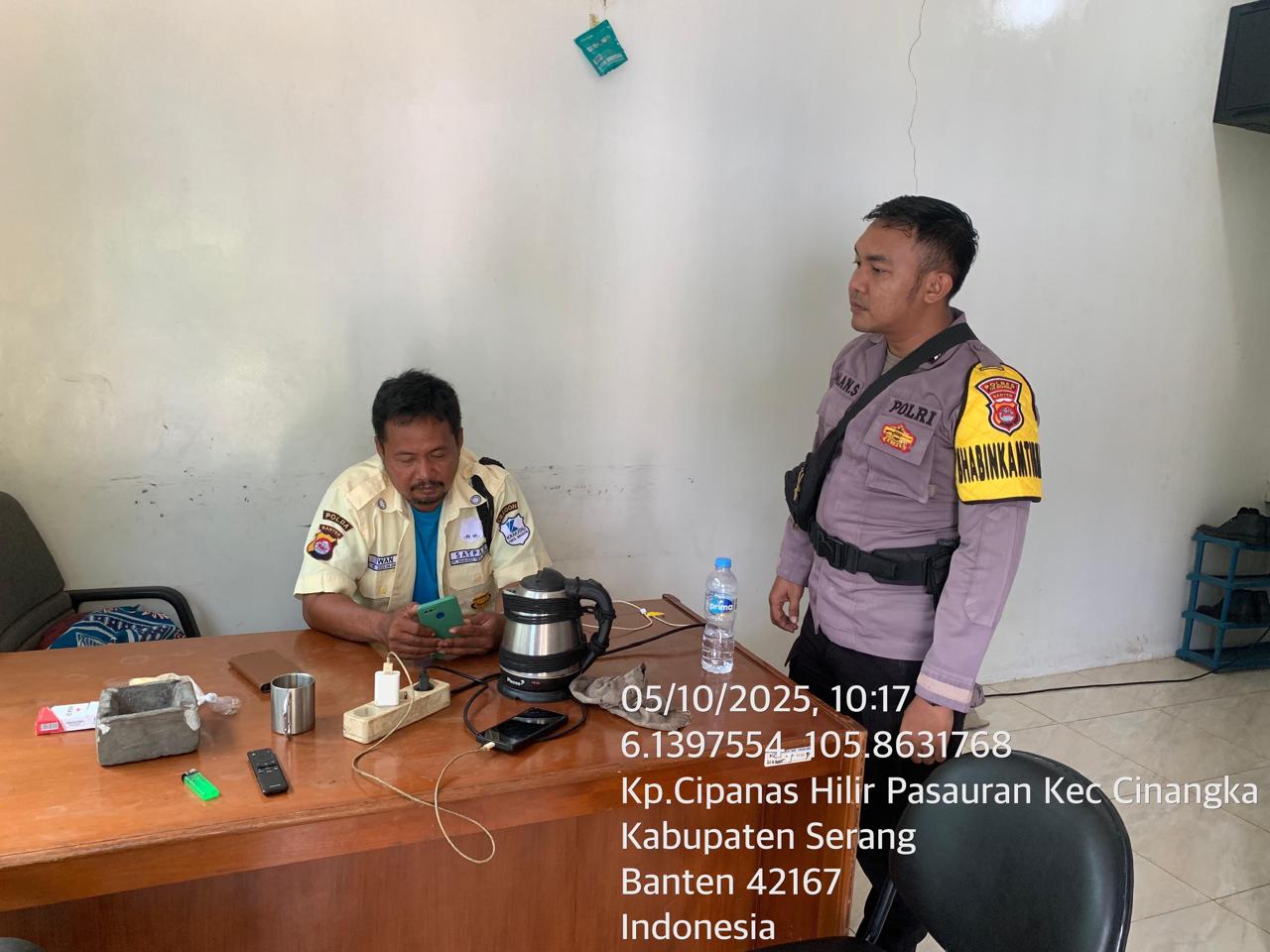 _*Cilegon*_ ~ Dalam rangka menciptakan situasi aman dan terjalinnya silaturahmi yang baik, Personil polsek Cinangka Polres Cilegon Polda Banten laksanakan Sambang Security sesuai arahan pimpinan kepada salah satu Perusahaan Desa. Sindanglaya kec. Cinangka Kab Serang. Senin (06/10/2025)