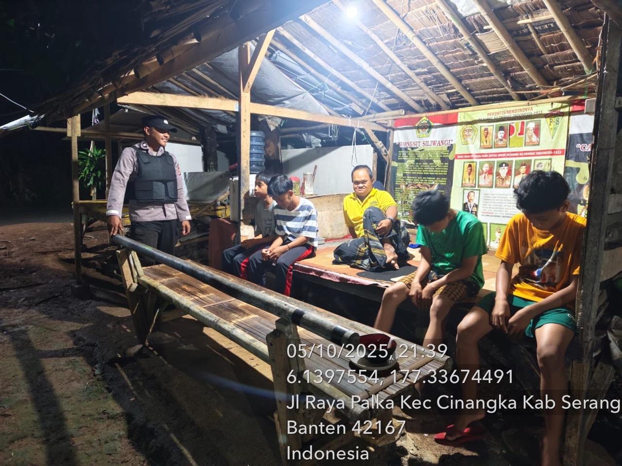 *Polres Cilegon* || Personil Bhabinkamtibmas Polsek Cinangka melaksanakan Program Komandan Wish Kapolda Banten RONDA SATKAMLING menyampaikan komunikasi dengan Petugas Siskamling agar berperan aktif dalam menciptakan Harkamtibmas yang aman dan Kondusif, Senin (06/10/2025).