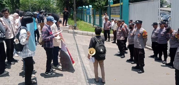 KAPOLSEK PURWAKARTA POLRES CILEGON PIMPIN PAM AKSI UNRAS ALIANSI MAHASISWA BANTEN DI UPT PLN CILEGON