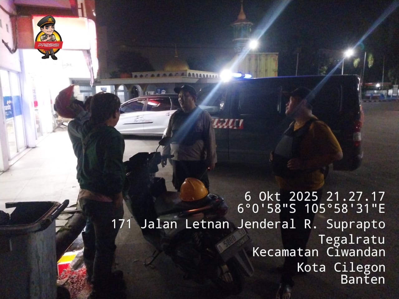 Cilegon - Guna mengantisipasi gangguan kamtibmas di Daerah hukum Polsek Ciwandan, Personil Polsek Ciwandan Polres Cilegon Polda Banten Selalu menggelar patroli malam Kedaerah Pada Jam Yang Dianggap Rawan hingga dini hari, Selasa (07/10/2025).