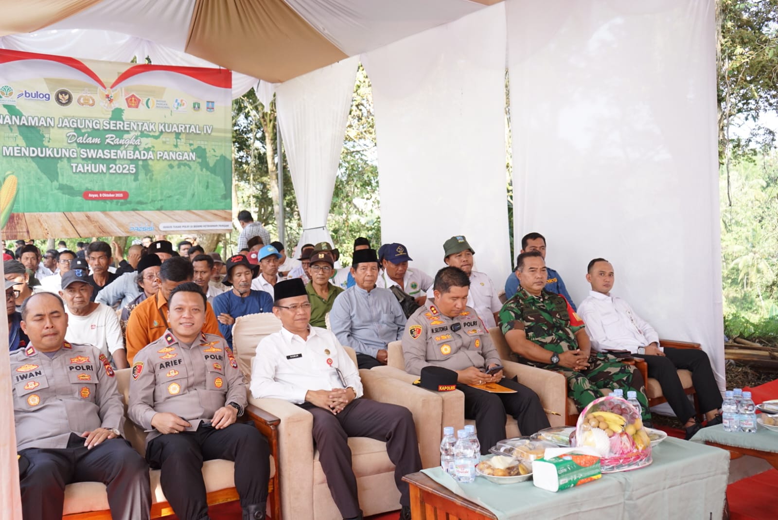 Dalam sambutannya, AKBP Martua menyampaikan bahwa kegiatan penanaman jagung serentak ini merupakan wujud nyata sinergi antara Polri dan masyarakat dalam mendukung program prioritas Presiden Republik Indonesia yang tergabung dalam program Asta Cita Pemerintahan Prabowo–Gibran menuju swasembada pangan nasional.