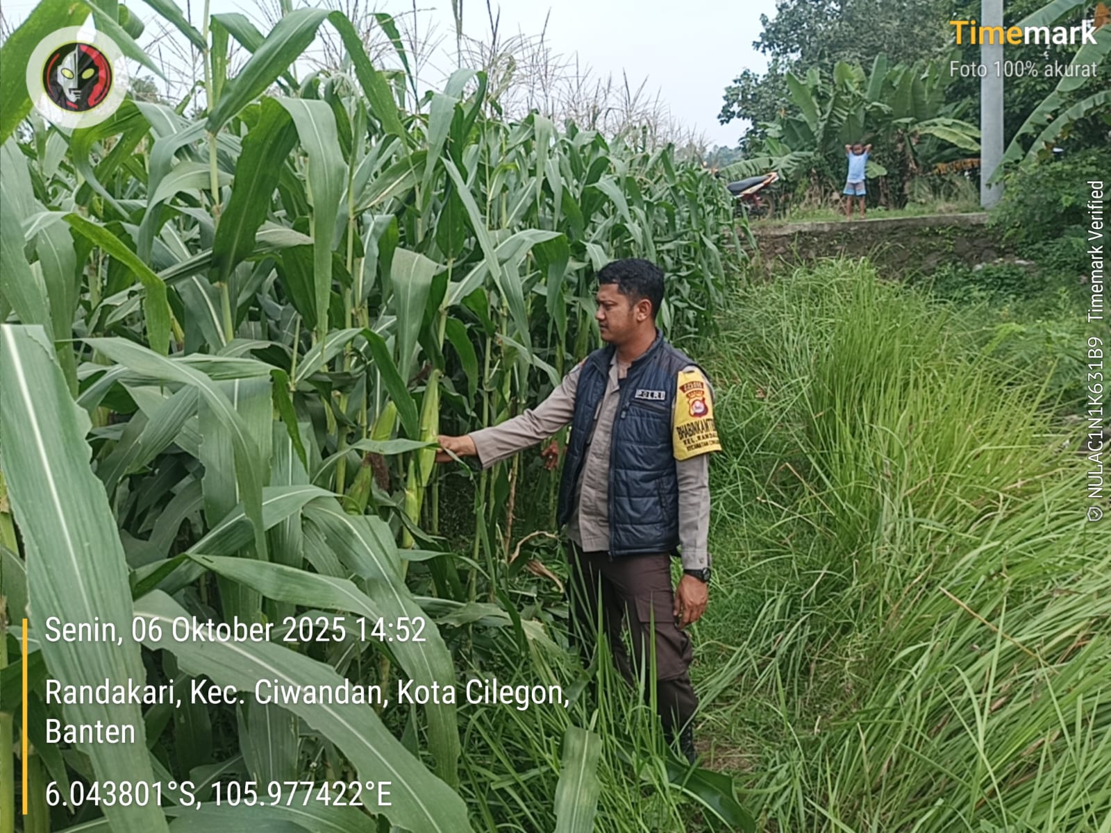 Cilegon - Dalam rangka memberikan dukungan kepada Pemerintah terkait Ketahanan pangan, Bhabinkamtibmas Ciwandan Polres Cilegon Polda Banten melaksanakan Implementasikan Program Asta Cita Presiden dengan fokus pada sektor Pertanian tanaman Jagung dilingkungan Binaan, Rabu (08/10/2025).