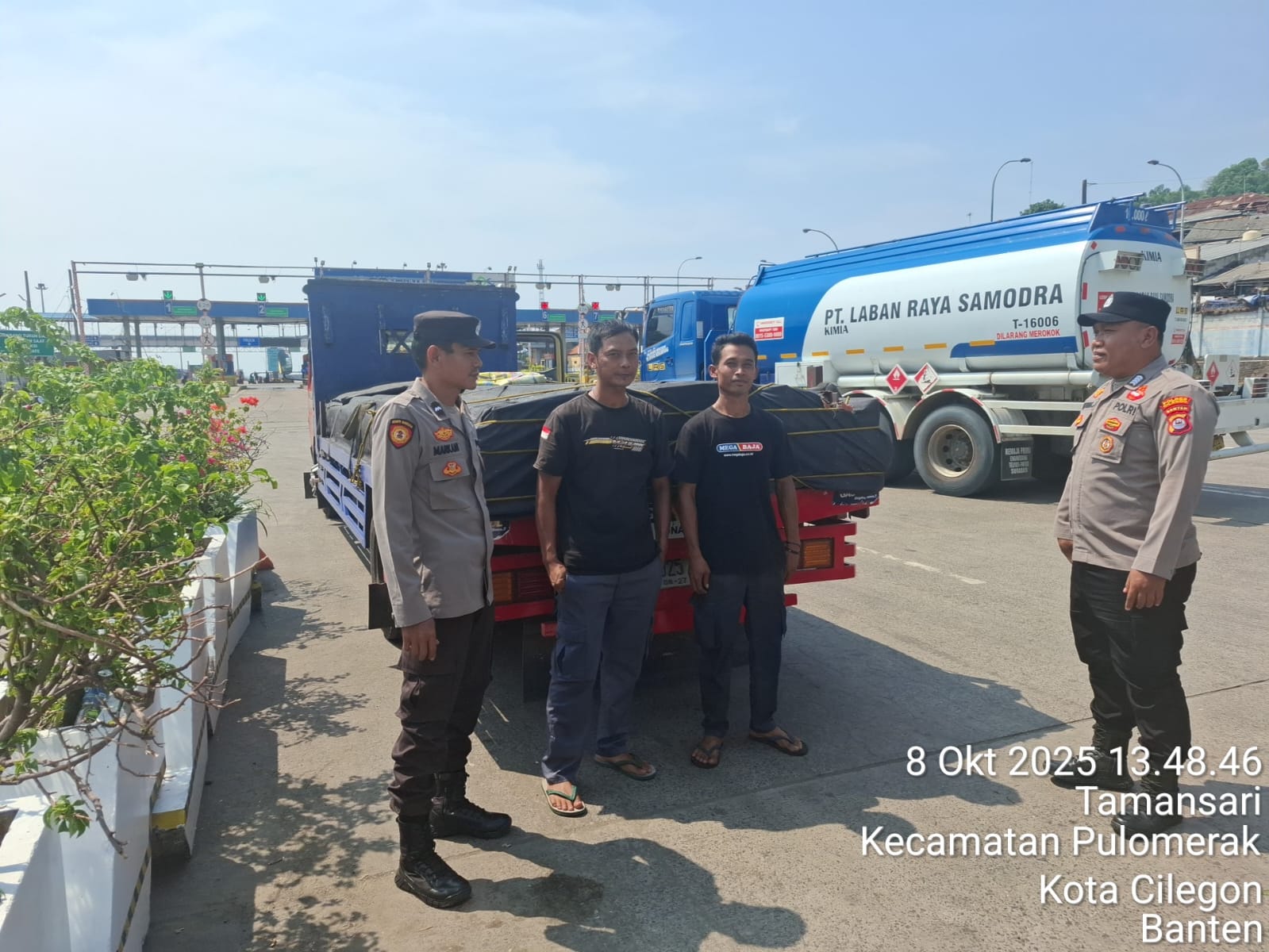 Cilegon - Personel Polsek Kskp Merak Polres Cilegon Polda Banten melaksanakan sambang dan patroli kawasan pelabuhan merak dalam rangka menjaga Harkamtibmas di Kawasan Pelabuhan Merak, Rabu (08/10/2025).