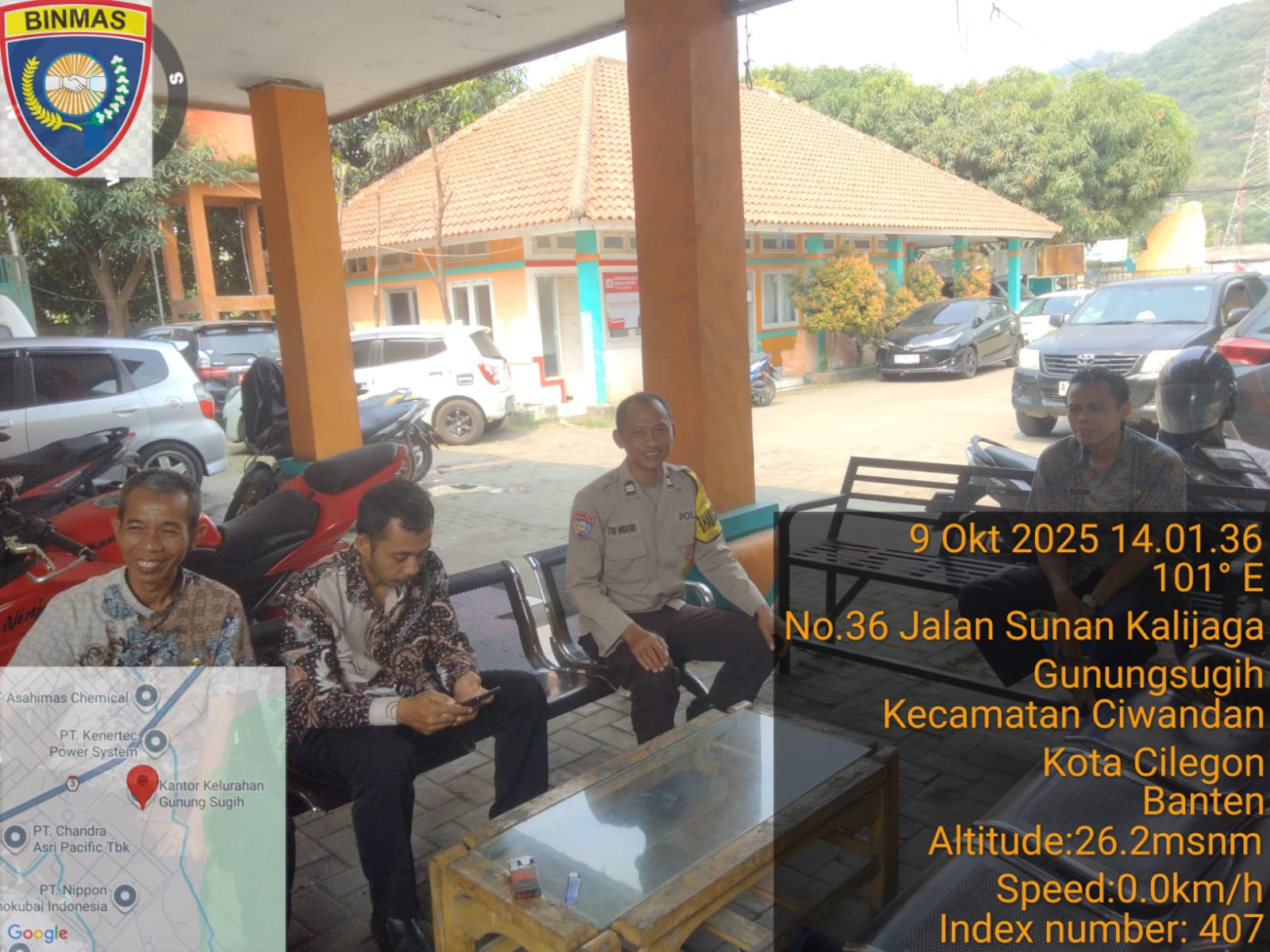 Cilegon –  Bhabinkamtibmas Polsek Ciwandan Polres Cilegon Polda Banten yaitu dengan menyambangi kantor Kelurahan binaannya guna membantu dan memantau langsung proses Pelayanan Masyarakat, Kamis (09/10/2025).