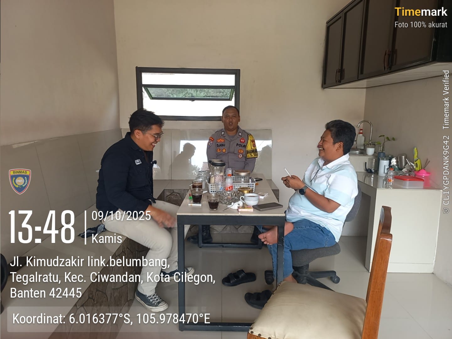 Cilegon - Kali ini Bhabinkamtibmas Polsek Ciwandan Polres Cilegon Polda Banten Bersilaturahmi Anjangsana warga binaanya Dan Tokoh Masyarakat merupakan salah satu tugas rutin yakni dengan melaksanakan Anjangsana/kunjungan kepada Tokoh masyarakat untuk menjalin silaturahmi yang lebih erat dan menyampaikan pesan-pesan kamtibmas serta mencari informasi yang berkembang di masyarakat agar tercipta situasi kamtibmas yang aman dan kondusif,Kamis (09/10/2025).