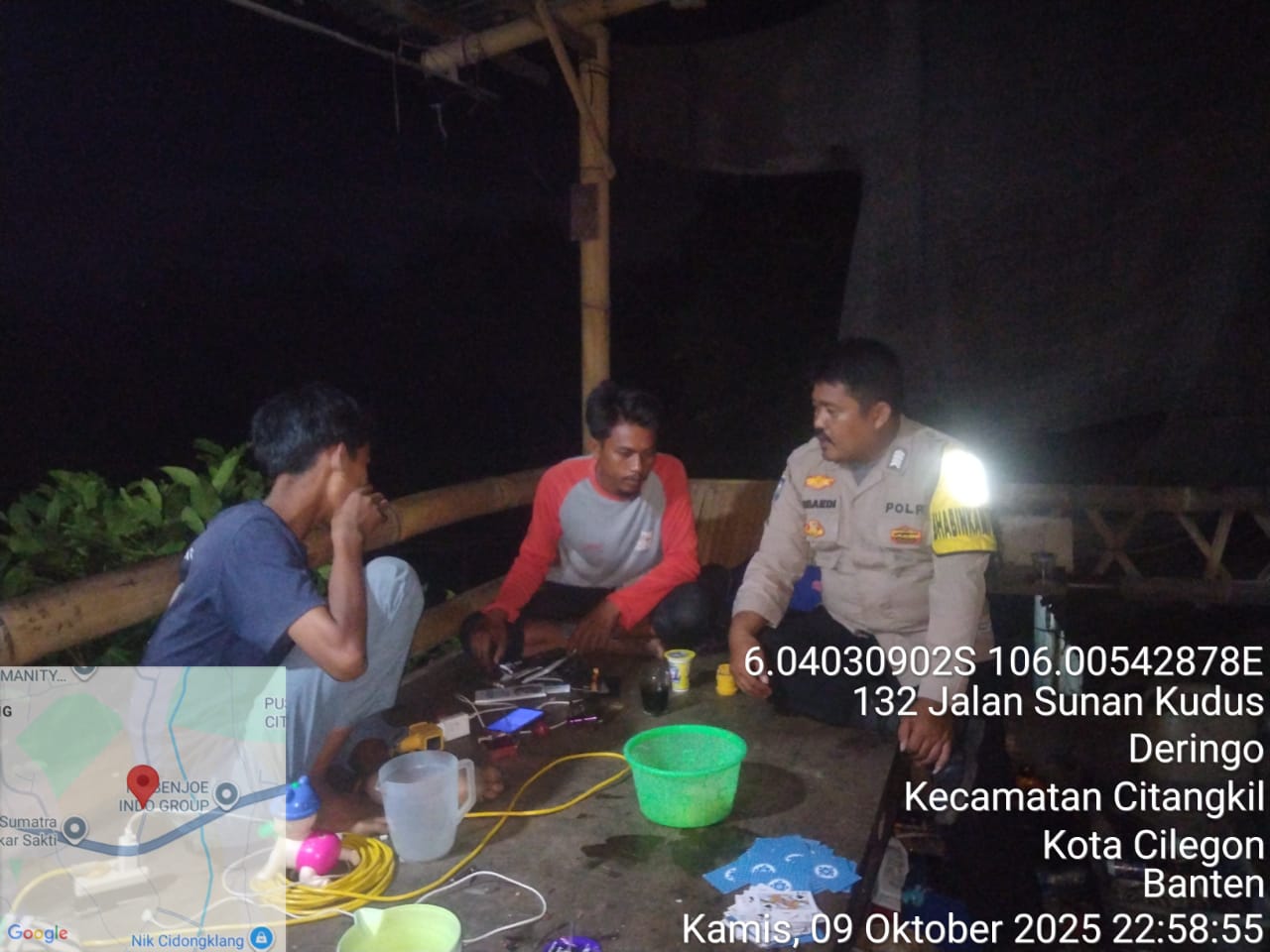 Cilegon - Upaya mengantisipasi aksi kejahatan pada daerah binaan dan memberikan rasa aman dan nyaman kepada warga binaan, Bhabinkamtibmas Polsek Ciwandan Polres Cilegon Polda Banten sambangi warga pada malam hari, Jum’at (09/10/2025).
