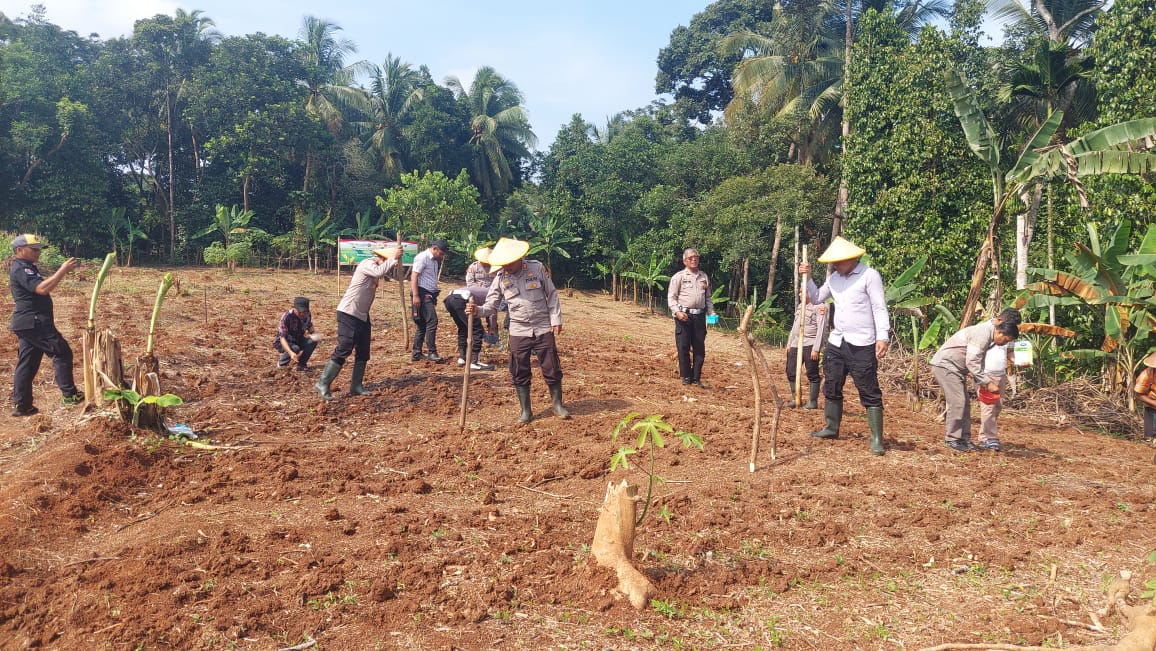 Penanaman Jagung serentak Kuartal IV Seluruh Indonesia di lahan milik kelompok tani Bpk. Maman Rt. 01/01 Kp. Macute Kel. Angsana Kec. Mancak-Serang daerah hukum Polres Cilegon.