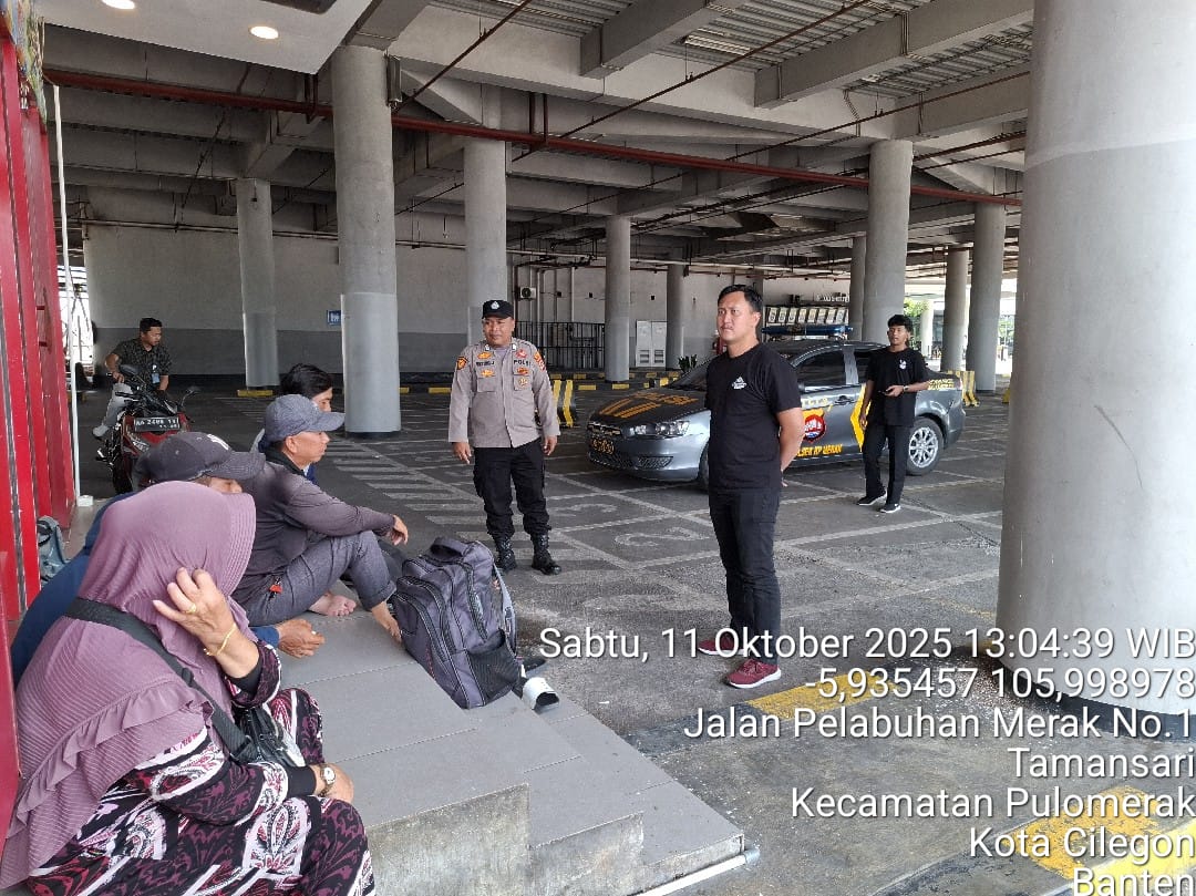 Cilegon - Personel Polsek Kskp Merak Polres Cilegon Polda Banten melaksanakan sambang dan patroli kawasan pelabuhan merak dalam rangka menjaga Harkamtibmas di Kawasan Pelabuhan Merak, Sabtu (11/10/2025).