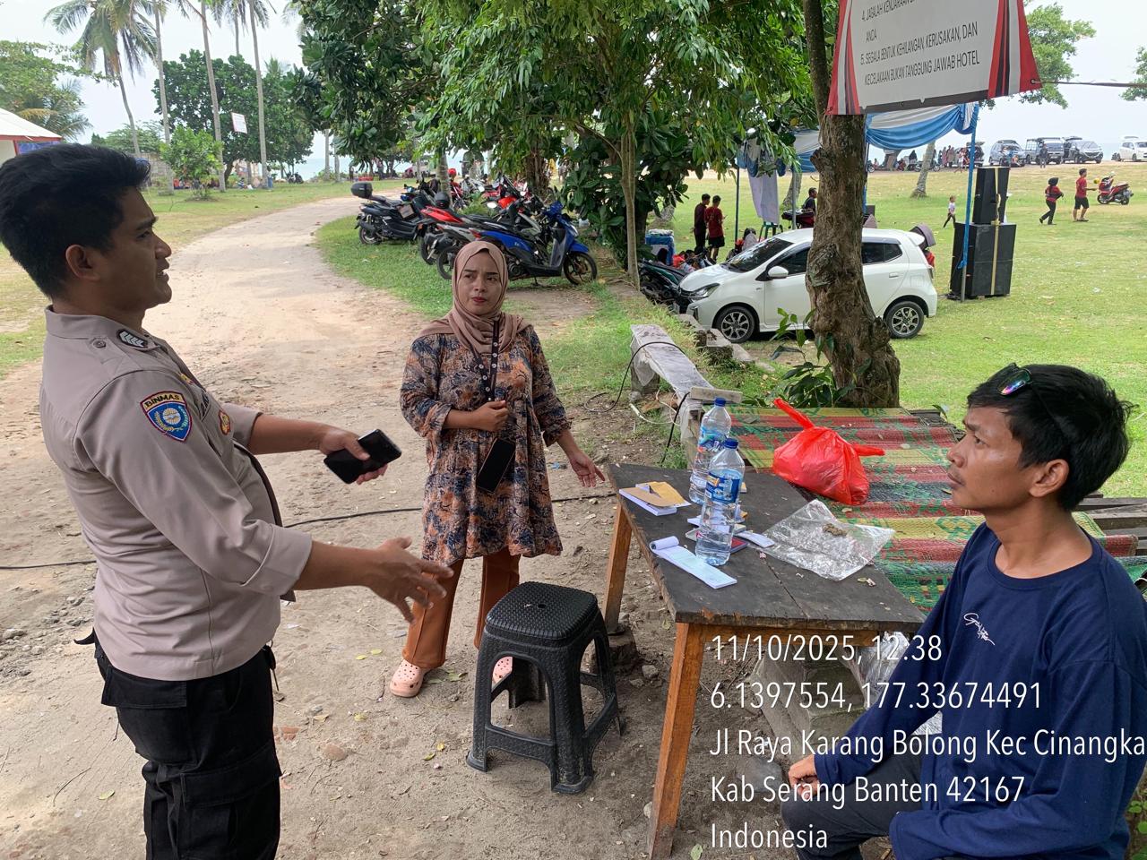 _*POLRES CILEGON*_ | Polsek Cinangka Polres Cilegon Polda Banten melaksanakan kegiatan patroli Serta memberikan Himbauan kepada pengunjung pantai yang berwisata dan Sambang kepada petugas penjaga pantai dan juga antisipasi harkamtibmas di Wilayah Hukum Polsek Cinangka Polres Cilegon Polda Banten, Sabtu (11/10/2025).