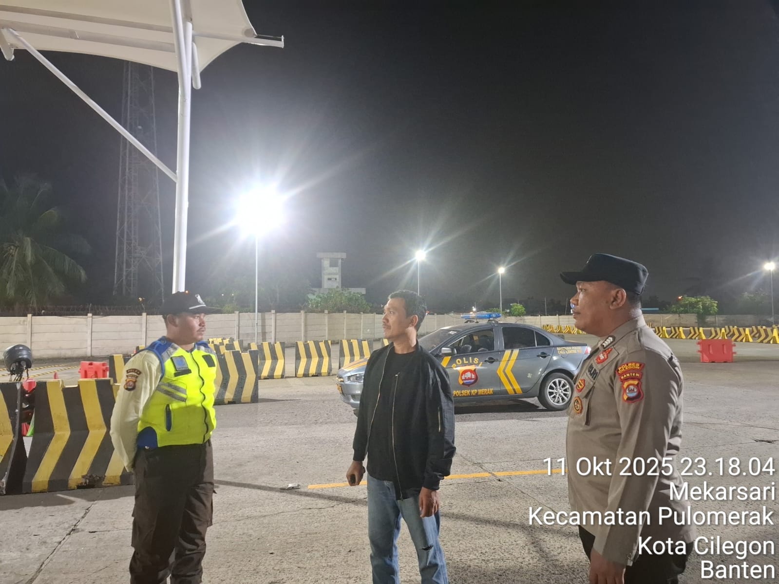 Cilegon - Personil Polsek Kskp Merak Polres Cilegon melaksanakan patroli di kawasan pelabuhan merak memberikan rasa aman dan damai, Minggu (12/10/2025)