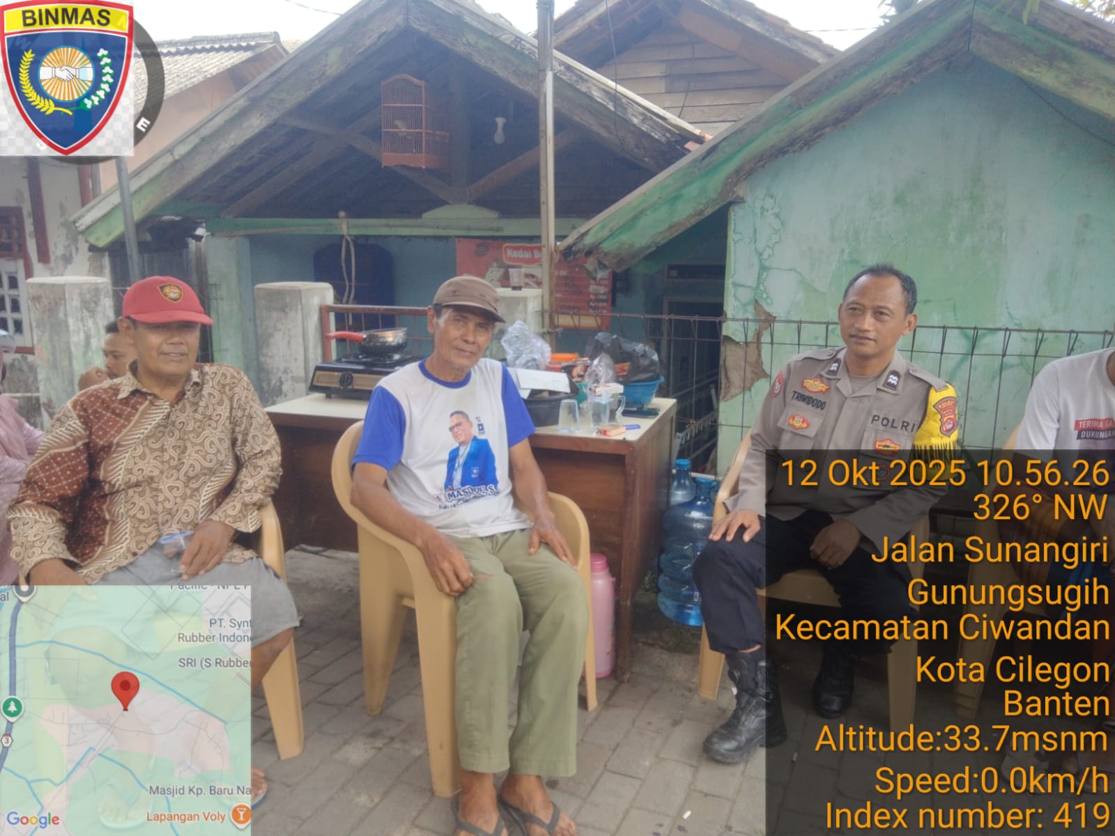 Cilegon - Konsisten dalam menjalin silaturahmi dan membangun komunikasi yang baik dengan Masyarakat binaannya masing – masing ,Bhabinkamtibmas Polsek Ciwandan Polres Cilegon Polda Banten Melaksanakan Sowan dan Sambang Dialogis menciptakan kamtibmas yang kondusif di daerah binaannya,Minggu (12/10/2025).