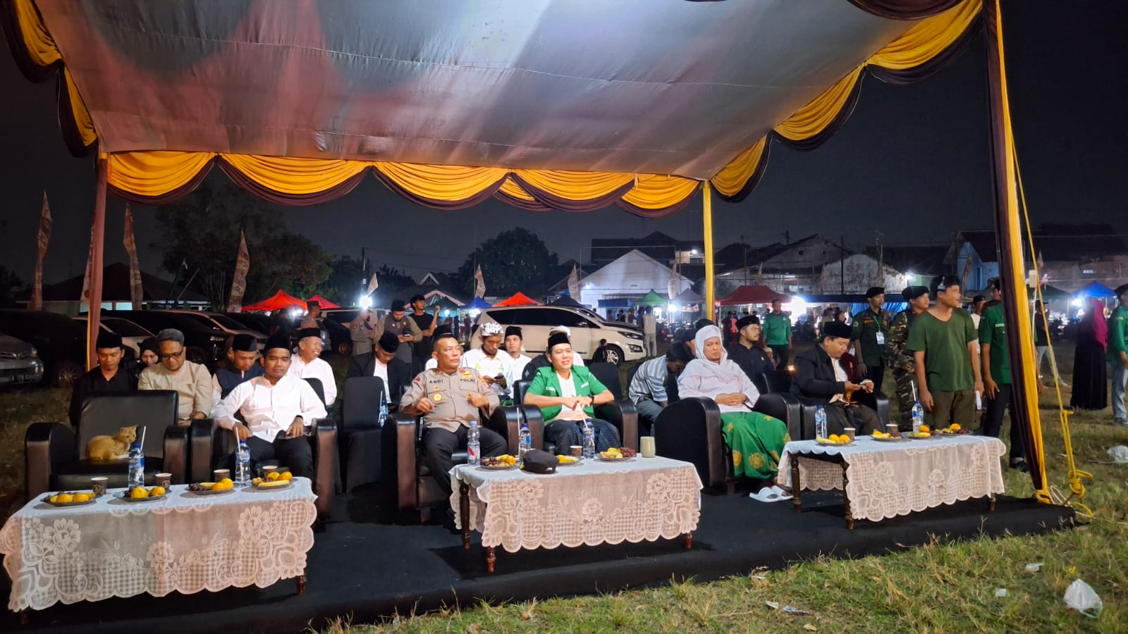 Kapolres Cilegon Polda Banten AKBP Dr. Martua Raja Taripar Laut Silitonga Melalui Kapolsek Ciwandan Polres Cilegon Polda Banten KOMPOL Andi Suherman Mengatakan bahwa Personil Gabungan melaksanakan pengamanan kegiatan Istigosah, Ceramah Agama, dan penampilan budaya dalam rangka Hari Santri Nasional yang diselenggarakan oleh Gerakan Pemuda (GP) Ansor Kota Cilegon. Kegiatan ini berlangsung pada Sabtu, 11 Oktober 2025, di Lapangan Sepak Bola Tong Link Delingseng, Kelurahan Kebonsari, Kecamatan Citangkil, Kota Cilegon.