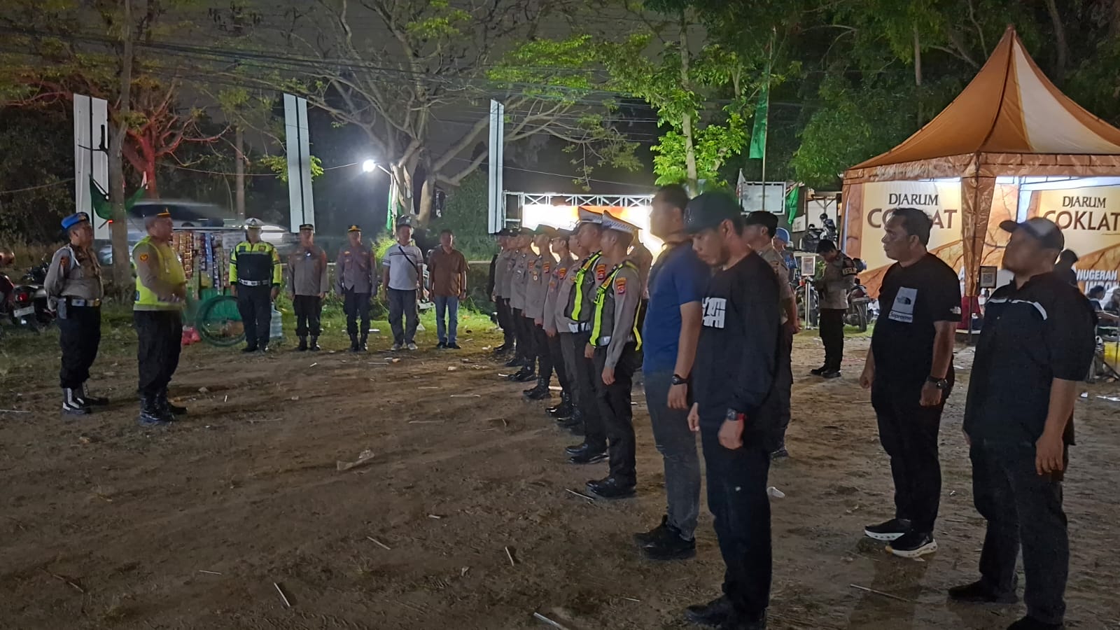 Kapolres Cilegon Polda Banten AKBP Dr. Martua Raja Taripar Laut Silitonga Melalui Kapolsek Ciwandan Polres Cilegon Polda Banten KOMPOL Andi Suherman Mengatakan bahwa Personil Gabungan melaksanakan pengamanan kegiatan Istigosah, Ceramah Agama, dan penampilan budaya dalam rangka Hari Santri Nasional yang diselenggarakan oleh Gerakan Pemuda (GP) Ansor Kota Cilegon. Kegiatan ini berlangsung pada Sabtu, 11 Oktober 2025, di Lapangan Sepak Bola Tong Link Delingseng, Kelurahan Kebonsari, Kecamatan Citangkil, Kota Cilegon.