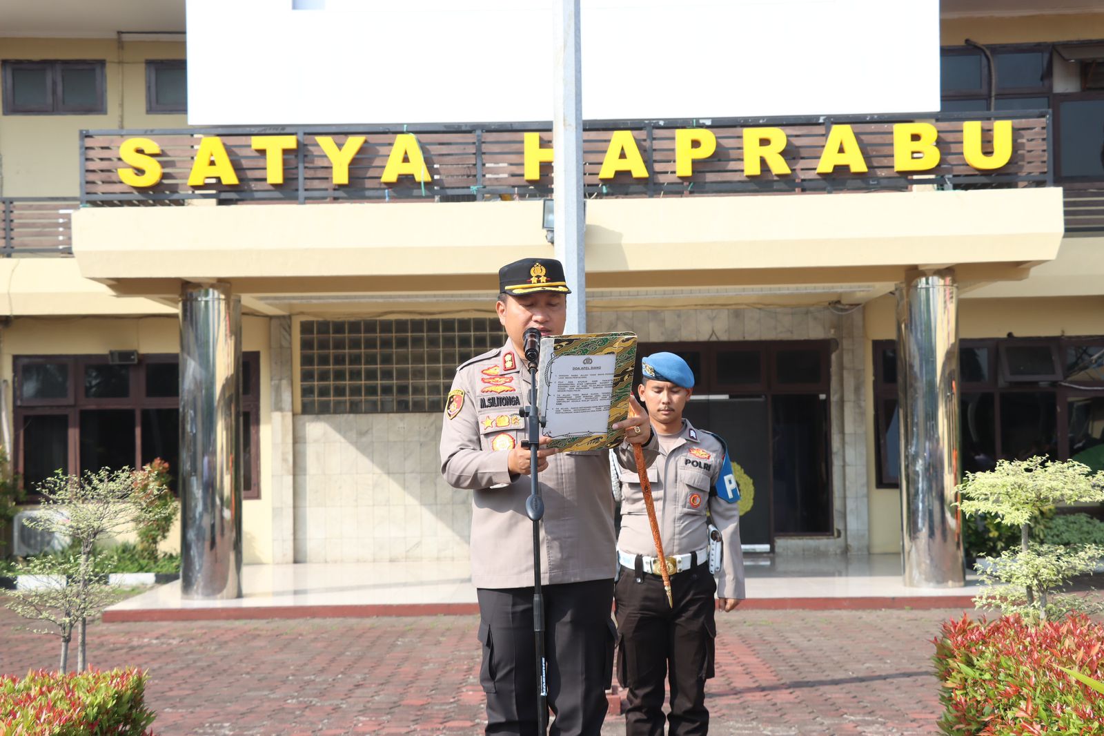 Cilegon – Polres Cilegon Polda Banten menggelar apel jam pimpinan yang berlangsung di Lapangan Satya Haprabu,  Kegiatan rutin mingguan ini dipimpin langsung oleh Kapolres Cilegon, AKBP Dr. Martua Raja Taripar Laut Silitonga, S.H., S.I.K., M.Si., dan diikuti oleh Wakapolres Kompol Arief Nazaruddin Yusuf, S.H., S.I.K., M.H., para Pejabat Utama, Kapolsek jajaran, perwira, bintara, serta ASN Polres Cilegon. Senin (13/10/2025).