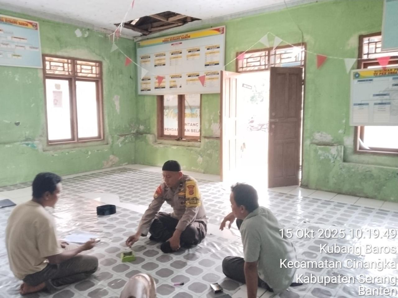 *CILEGON* dalam Rangka Mengantisipasi Gktm di wilayah Personil Bhabinkamtibmas Cinangka melakukan patroli Dialogis dengan Kepala Desa dan warga dan Menanyakan situasi Kamtibmas di wilayah dalam Rangka Menjaga Harkamtibmas di Desa Binaannya Kecamatan Cinangka Kab. Serang. Rabu (15/10/2025).