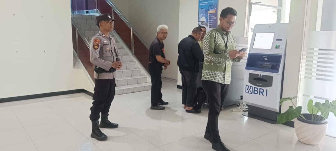 Anggota satpamobvit polres cilegon melaksanakan pengamanan bank BRI