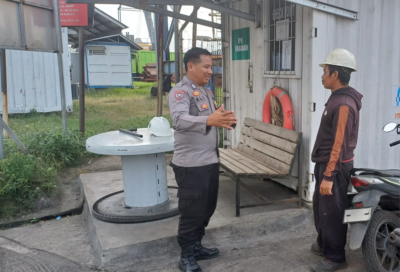 Jalin Silaturahmi, Bhabinkamtibmas Pelabuhan Polsek KP Banten berbincang ke Buruh Pelabuhan