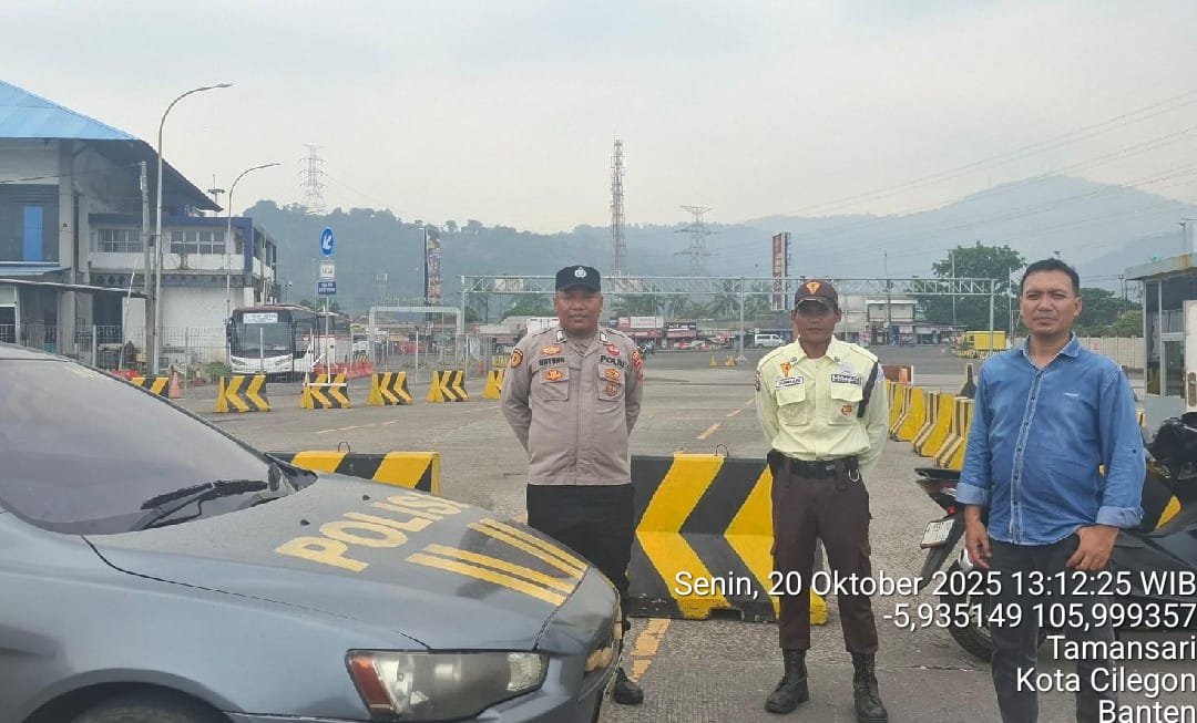 Cilegon - Personel Polsek Kskp Merak Polres Cilegon Polda Banten melaksanakan sambang dan patroli kawasan pelabuhan merak dalam rangka menjaga Harkamtibmas di Kawasan Pelabuhan Merak, Senin (19/10/2025).