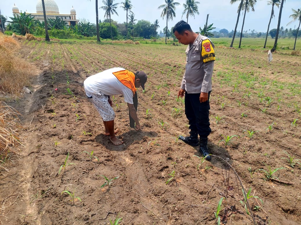 Polri melalui Bhabinkamtibmas berperan aktif dalam mendukung upaya masyarakat meningkatkan ketahanan pangan. Kami hadir untuk memberikan rasa aman, sekaligus ikut memantau langsung kondisi pertanian di desa,” ujar Kapolsek