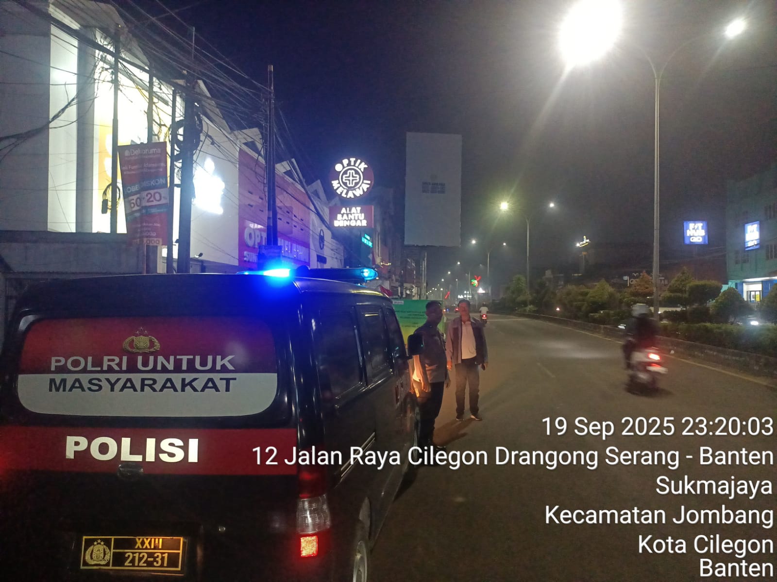 POLRES CILEGON- Polda Banten. Dalam Rangka Ciptakan situasi kamtibmas kondusif Polsek Cilegon Lakukan Patroli malam Anggota Piket Melaksanakan dini hari Pastikan Masyarakat Nyaman Menikmati Lewati Jalan Dalam Rangka Menciptakan Rasa aman Masyarakat Melintas jalur Protokol, Personil Polsek Cilegon Polres Cilegon Lakukam Langkah tindakan Preventif kepada Muda Mudi yang sedang Nongkrong sampai dini hari serta melaksanakan tindakan Antisipasi Gangguan Kamtibmas Kriminalitas dan Balap Liar di Wilayah Polsek Cilegon Kecamatan Cilegon Kota Cilegon. serta sebagai Cooling Sistem Kamtibmas di wilayah binaan agar Aman, Kondusif dan terkendali. Rabu (22/10/2025).