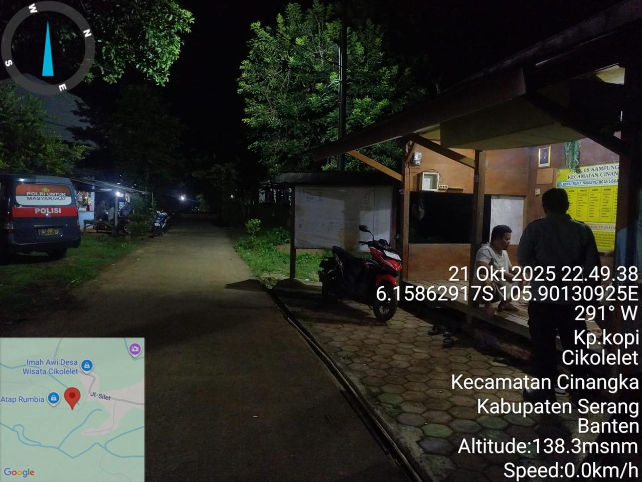*Polres Cilegon* || Personil Bhabinkamtibmas Polsek Cinangka melaksanakan Program Komandan Wish Kapolda Banten RONDA SATKAMLING menyampaikan komunikasi dengan Petugas Siskamling agar berperan aktif dalam menciptakan Harkamtibmas yang aman dan Kondusif, Selasa (22/10/2025).
