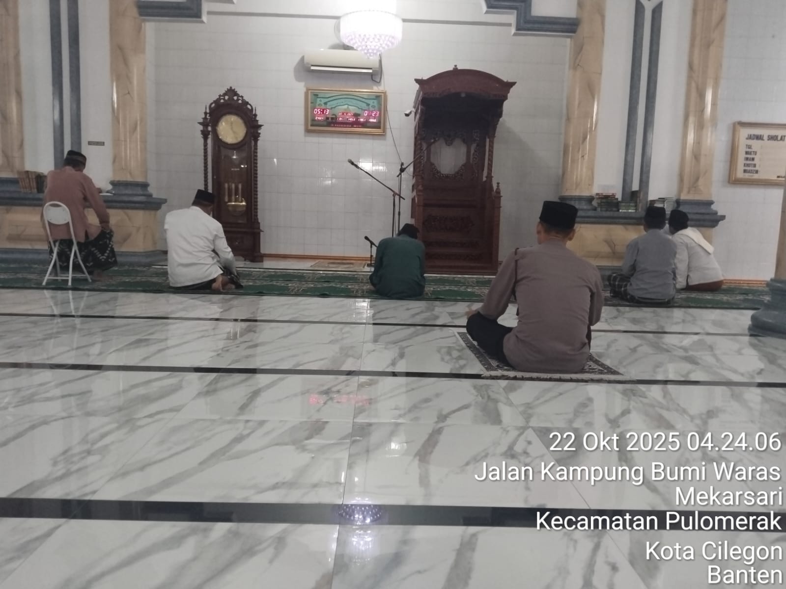 Cilegon – Personil Kskp Merak Polres Cilegon Polda Banten menggelar kegiatan Pembinaan Rohani dengan shalat subuh keliling di Masjid Yang ada Di Daerah hukum Polsek Kp Merak Polres Cilegon Polda Banten, Rabu (22/10/2025).