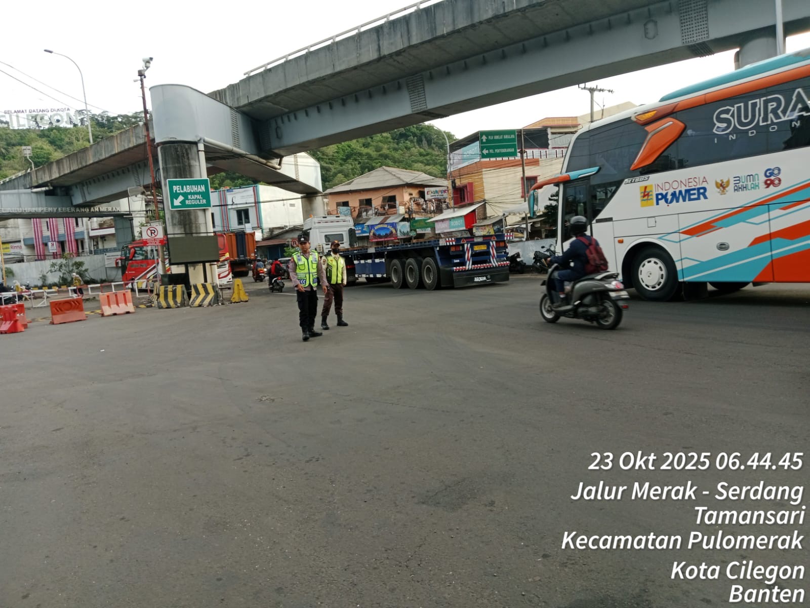 Wujud Pelayanan Prima, Personel Polsek KSKP Merak Bantu Atur Kendaraan Penyeberangan Merak–Bakauheni