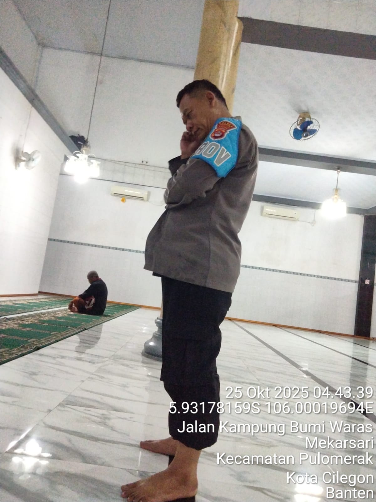 Cilegon – Personil Kskp Merak Polres Cilegon Polda Banten menggelar kegiatan Pembinaan Rohani dengan shalat subuh keliling di Masjid Yang ada Di Daerah hukum Polsek Kp Merak Polres Cilegon Polda Banten, Jumat (24/10/2025).
