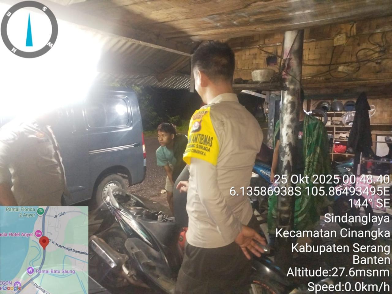 *Cilegon* – Dalam Rangka Pencegahan Kejahatan Jalanan dan Memelihara situasi keamanan dan menjaga serta memberikan rasa aman dan nyaman di masyarakat,Salah satu upaya untuk mewujudkan hal tersebut sebagaimana yang dilakukan oleh Personil Polsek Cinangka Polres Cilegon Polda Banten melaksanakan giat patroli blue light malam hari hingga menjelang pagi, Sabtu (25/10/2025).