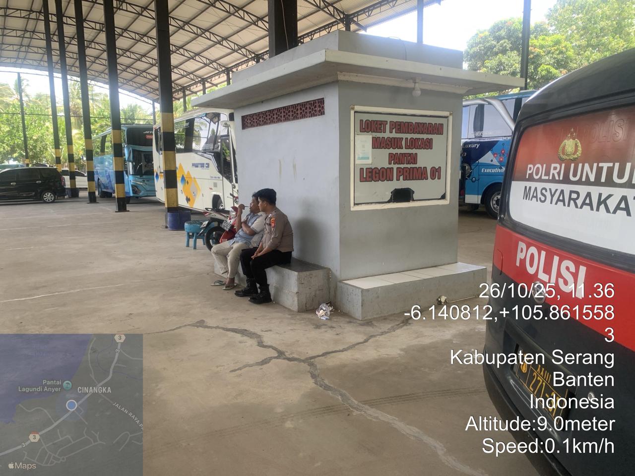 _*POLRES CILEGON*_ | Polsek Cinangka Polres Cilegon Polda Banten melaksanakan kegiatan patroli Serta memberikan Himbauan kepada pengunjung pantai yang berwisata dan Sambang kepada petugas penjaga pantai dan juga antisipasi harkamtibmas di Wilayah Hukum Polsek Cinangka Polres Cilegon Polda Banten, Minggu (26/10/2025).