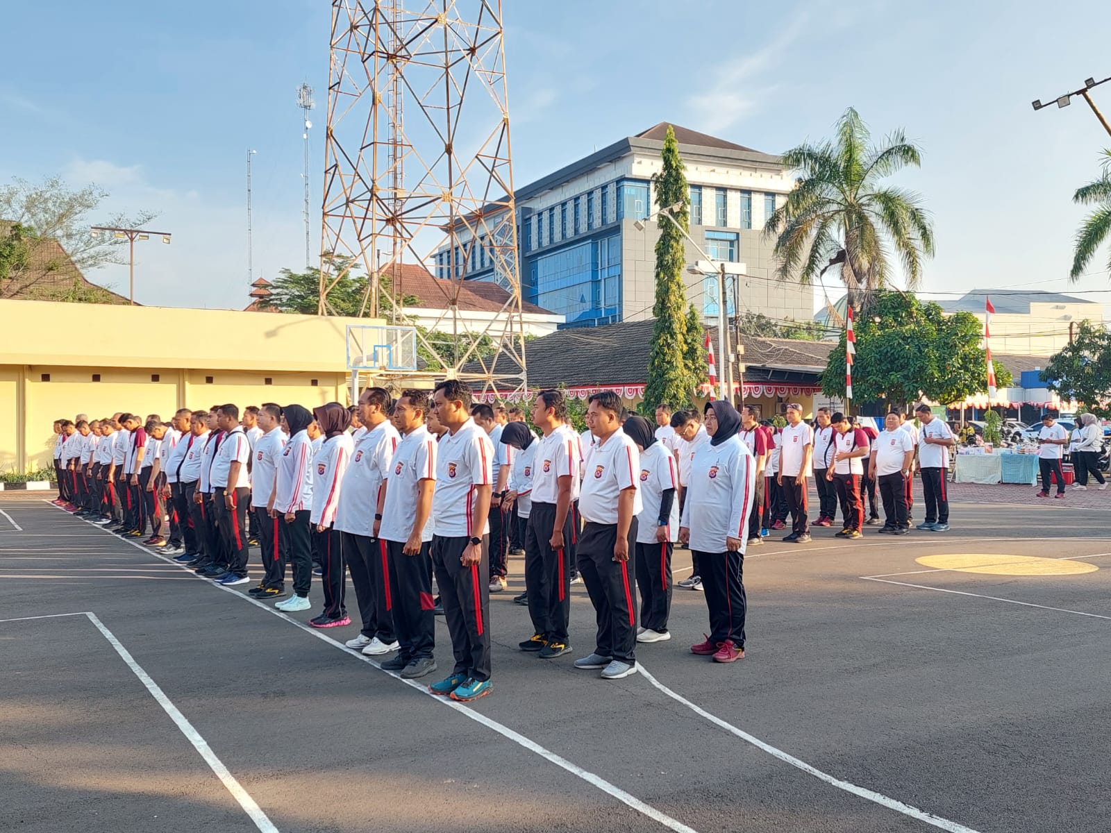 Cilegon, Polres Cilegon ,Polda Banten, Personil Polres Cilegon Melaksanaan Apel pagi,