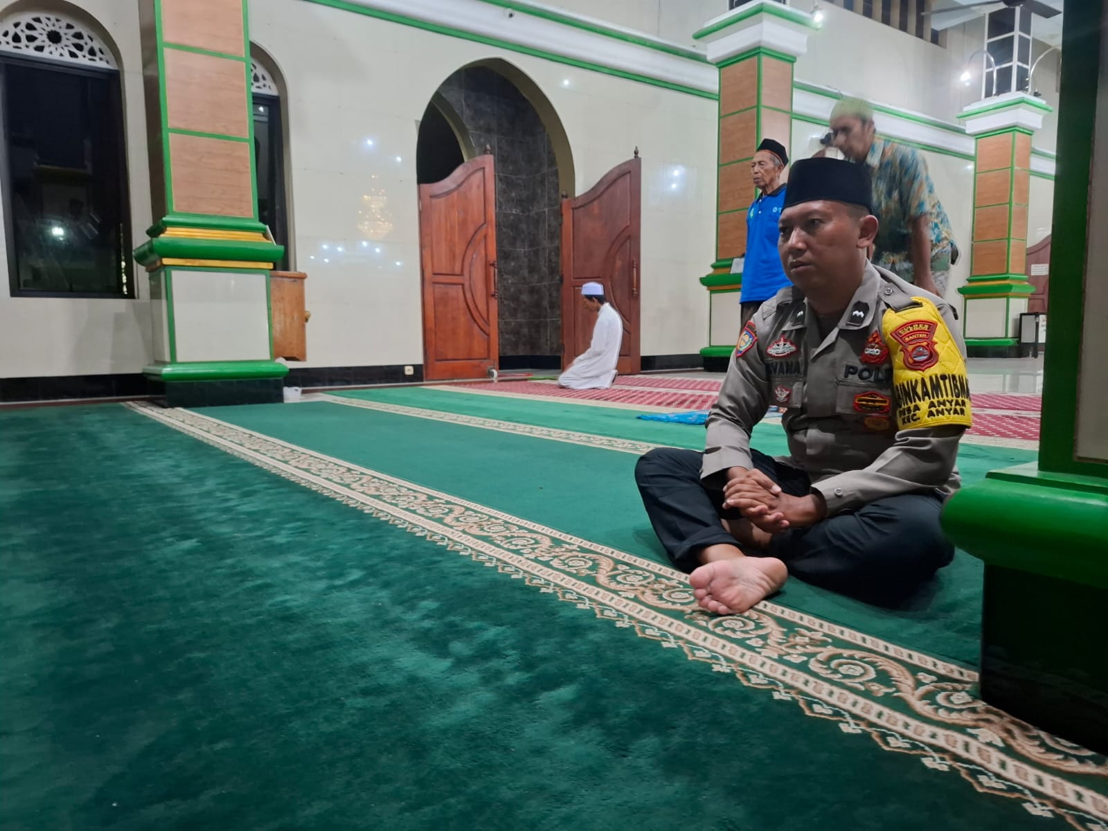 Personil Polsek Anyar Polres Cilegon laksanakan Subuh keliling di Masjid At Taubah Desa Anyar kec. Anyar, Selasa (28/10)